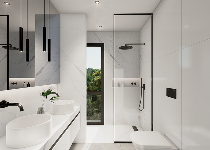 Här erbjuds sju moderna fristående villor med stroa trädgårdar, privat swimming pool och möjlighet till olika modifieringar och tillval.